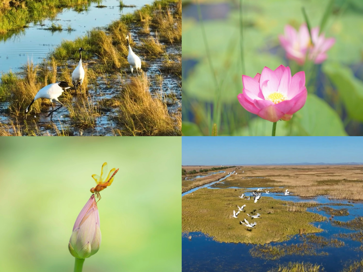 除了植物,这里还是鸟类的天堂。想象一下,一抬头就能看到成群的鸟儿在蓝天翱翔,时不时传来清脆的鸟鸣,那画面,简直太治愈了。随着生态环境越来越好,越来越多的夏候鸟重返这片充满生机的热土停歇、栖息繁殖,监控数据显示,鸟类从原来的177种增加到179种,国家一级保护野生动物白枕鹤等从6种增加到9种,国家二级保护野生动物从39种增加到42种 。每年春季候鸟北迁时节,都有数以万计的鸟儿来到景区,停歇、栖息繁殖。这里成为东亚——澳大利西亚鸟类迁徙路线上的重要驿站和鸟类栖息地。